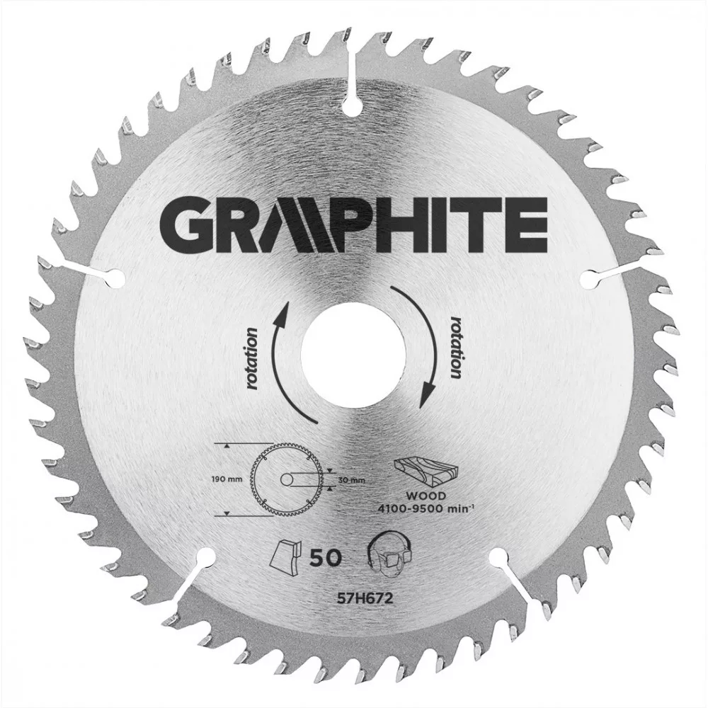 GRAPHITE Fierăstrău circular cu dinți din carbura de tungsten, 190x30mm, 50 de dinți (57H672)