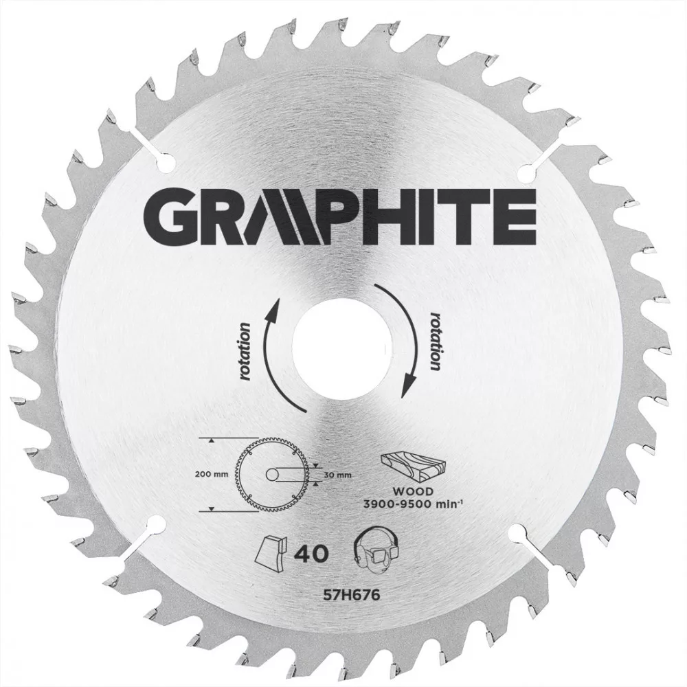 GRAPHITE Fierăstrău circular cu dinți din carbura de tungsten, 200x30mm, 40 de dinți (57H676)