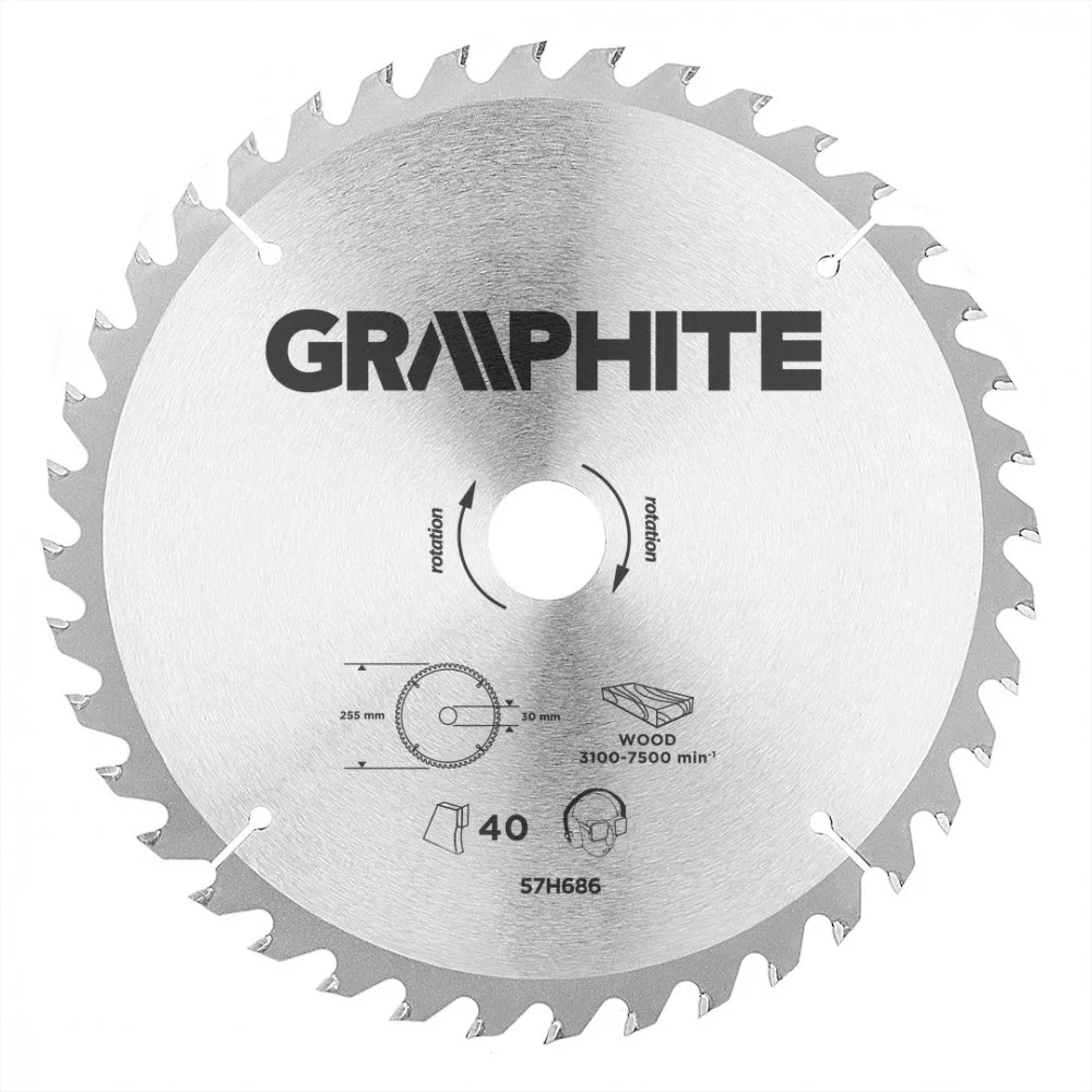 GRAPHITE Fierăstrău circular cu dinți din carbura de tungsten, 255x30mm, 40 de dinți (57H686)