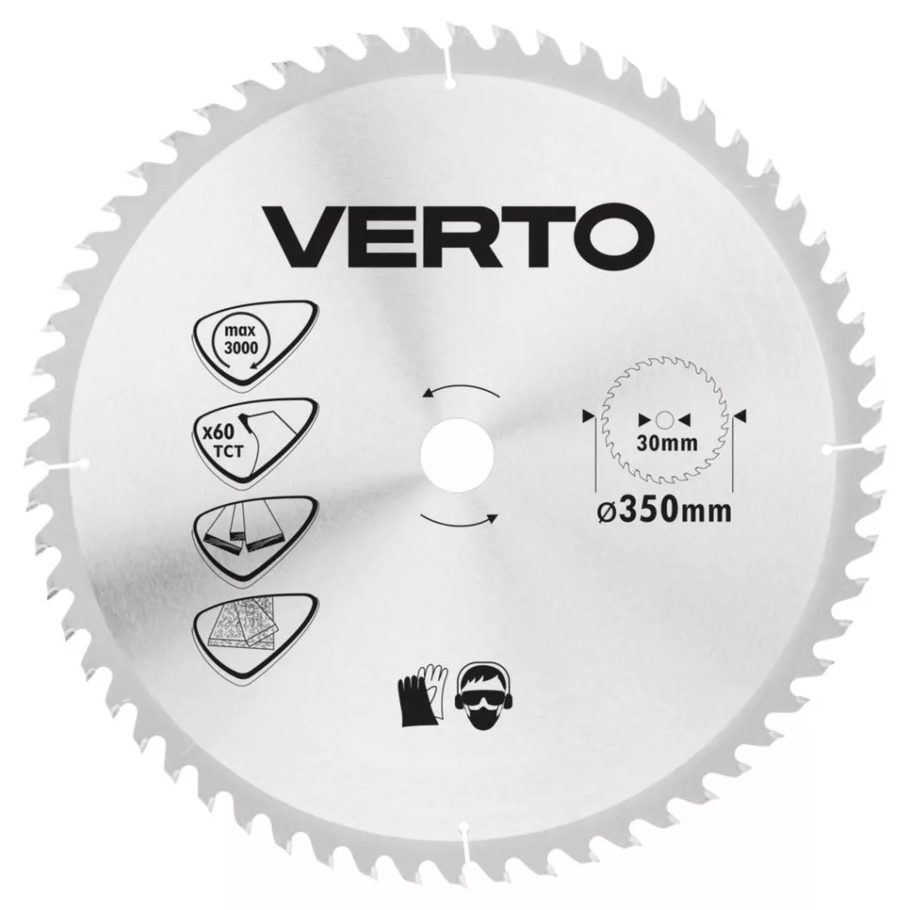 VERTO Pânză de fierăstrău circular cu dinți din carbură, 350x30mm, 60 dinți (61H144)