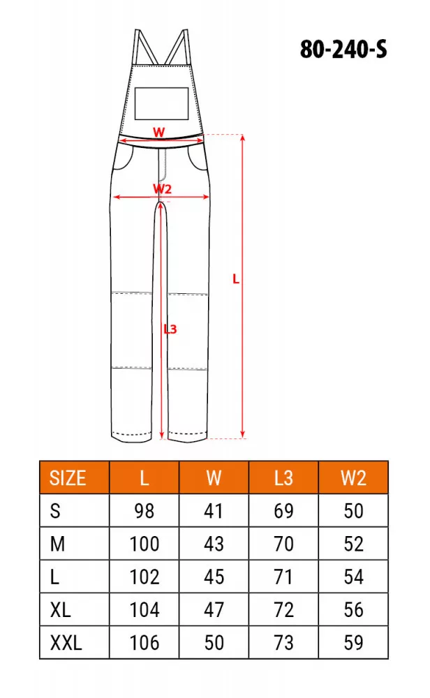 NEO Pantaloni de lucru femei, cu bretele, 65% bumbac, 35% poliester, 245 g/m2, S (80-240-S)