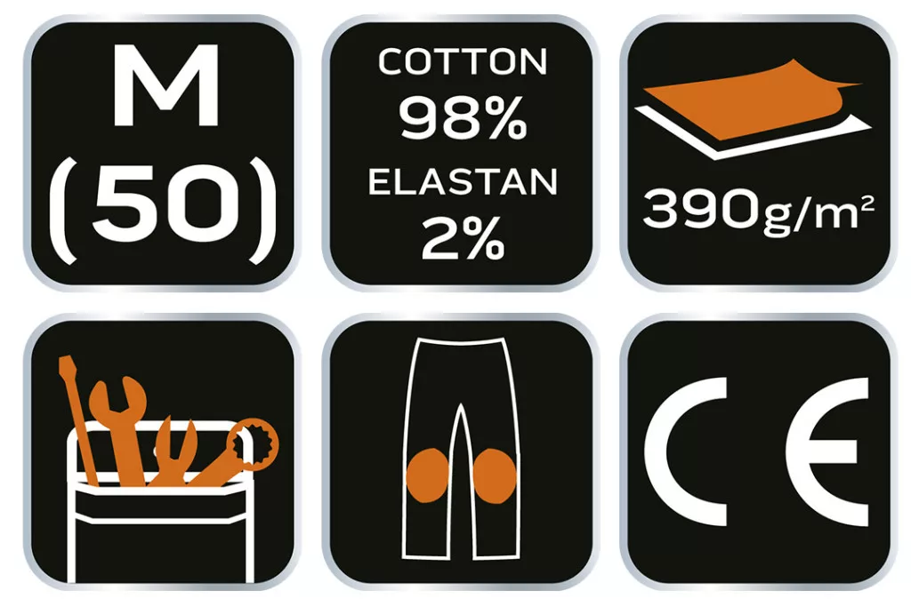 NEO Pantaloni de lucru din blugi, 98% bumbac, întărire la genunchi, 255 g/m², M (81-228-M)