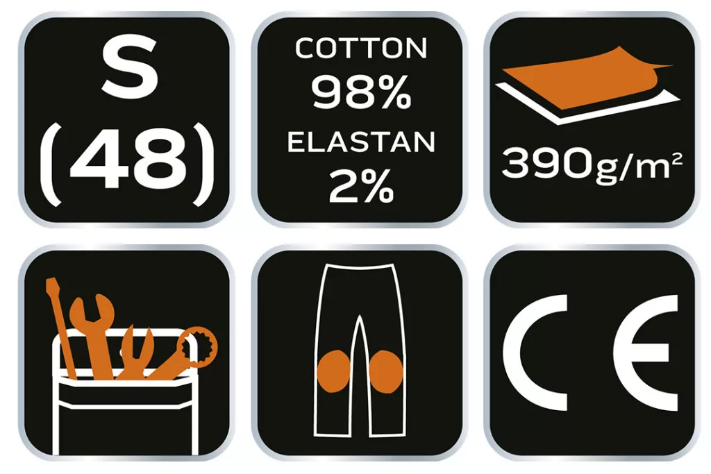 NEO Pantaloni de lucru din blugi, 98% bumbac, întărire la genunchi, 255 g/m², S (81-228-S)