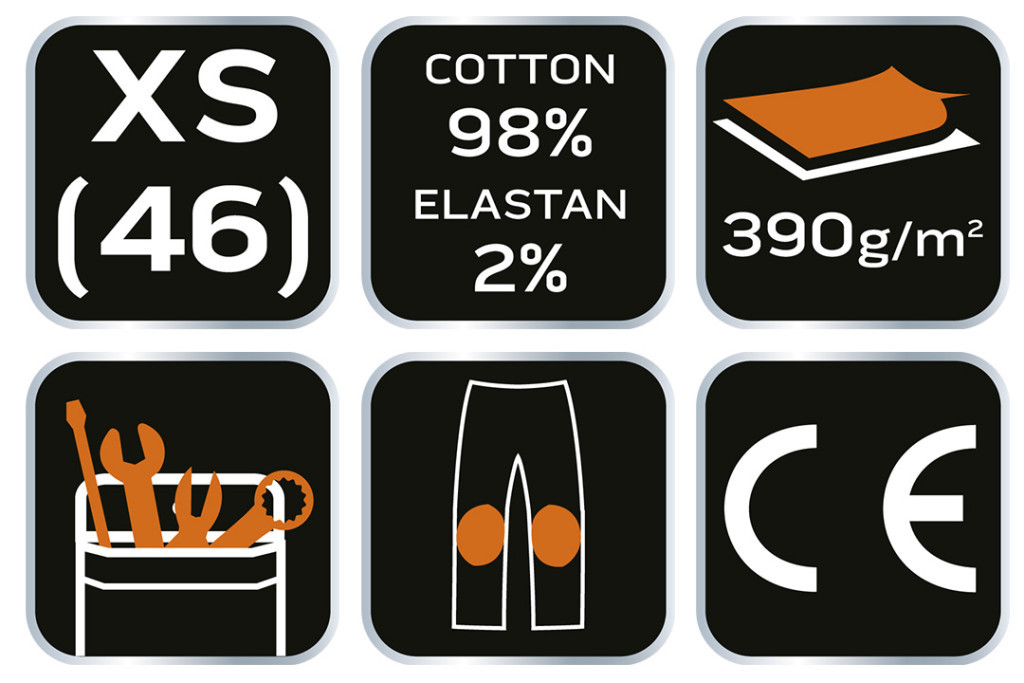 NEO Pantaloni de lucru din blugi, 98% bumbac, întărire la genunchi, 255 g/m², XS (81-228-XS)