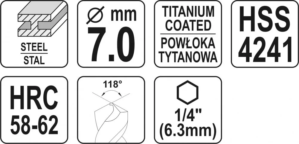 YATO Burghiu frezor metal HSS-TiN cu prindere bit 7,0×92 mm (YT-44825)
